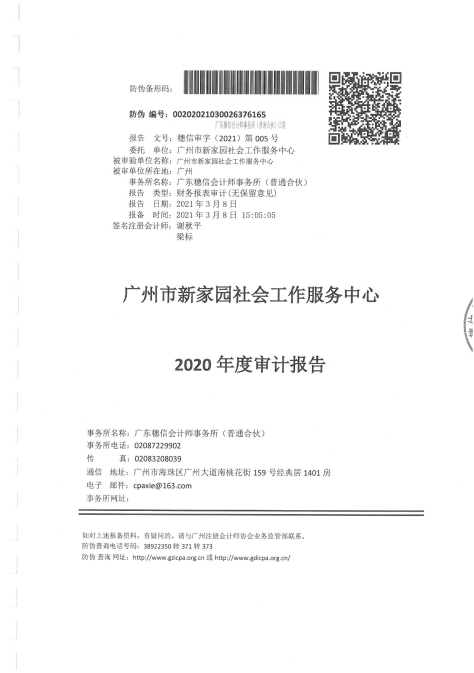 广州市新家园社会工作服务中心 2020年年度审计报告